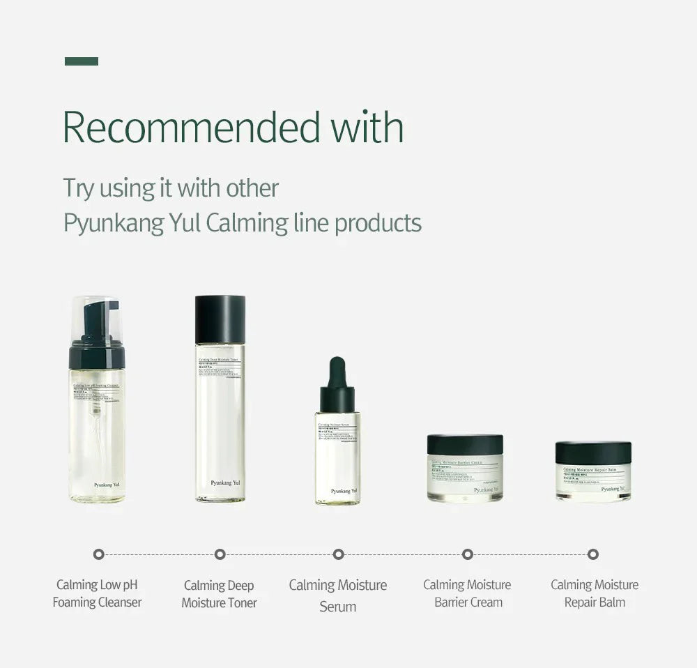 The Pyunkang Yul Calming Line Gift Set, which includes a toner (150ml), serum (30ml), and calming moisture barrier cream (50ml), is designed to soothe skin, providing 24-hour hydration and firmness without clogging pores. Formulated with EWG graded green and safe ingredients, this vegan and cruelty-free product has been clinically tested for pore tightening, sebum control, and skin texture improvement. Recommended for acne-prone, sensitive, and red skin types, the set works best when used with Pyunkang Yul Calming Nourishing Cream and Calming Moisture Repair Balm. Key ingredients like ceramide strengthen the skin's moisture barrier, while panthenol and shea butter deliver deep hydration. The light texture of these products ensures they are easily absorbed, leaving the skin healthy and nourished. To use, apply the Calming Deep Moisture Toner, followed by the serum, and finish with the Calming Moisture Barrier Cream.