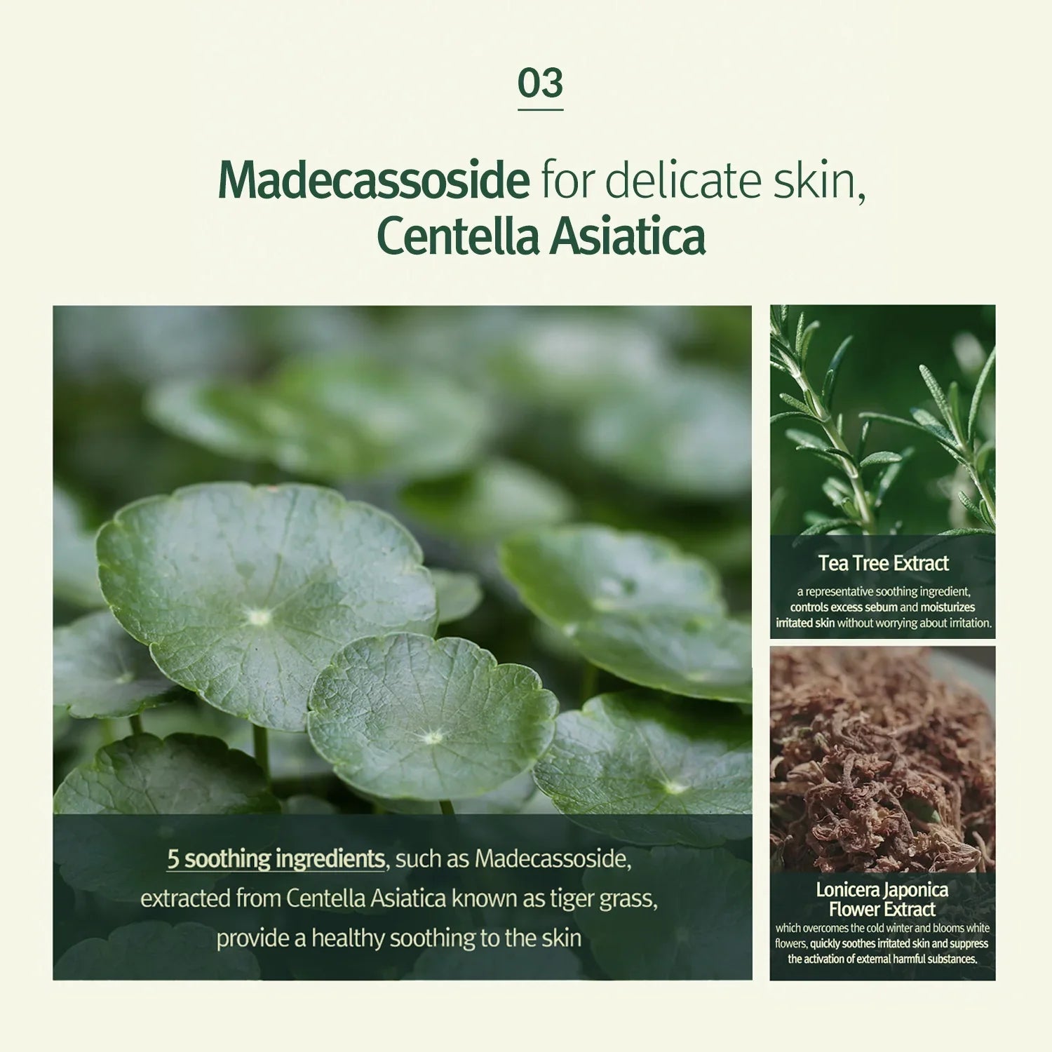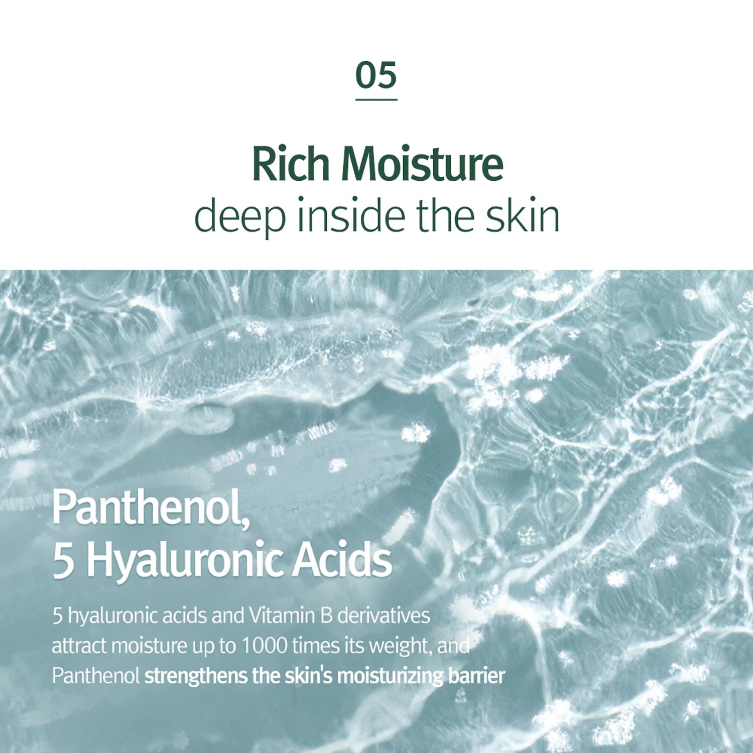 Water, Butylene Glycol, Propanediol, Glycerin, Dipropylene Glycol, Polyglyceryl-10 Myristate, Hydroxyacetophenone, Pentylene Glycol, Caprylyl Glycol, Cetyl Ethylhexanoate, Caprylic/Capric Triglyceride, Ethylhexyl Palmitate, Allantoin, C12-14 Pareth-12, Panthenol, 1,2-Hexanediol, Sodium Hyaluronate, Hydrolyzed Hyaluronic Acid, Hydroxypropyltrimonium Hyaluronate, Sodium Hyaluronate Crosspolymer, Sodium Acetylated Hyaluronate, Ethylhexylglycerin, Disodium EDTA, 1,2-Hexanediol, Bambusa Vulgaris Extract, Centella Asiatica Extract, Madecassoside, Madecassic Acid, Asiaticoside, Asiatic Acid, Melaleuca Alternifolia (Tea Tree) Leaf Extract, Ethylhexylglycerin, Lonicera Japonica (Honeysuckle) Flower Extract, Salix Alba (Willow) Bark Extract, Citric Acid, Gluconolactone