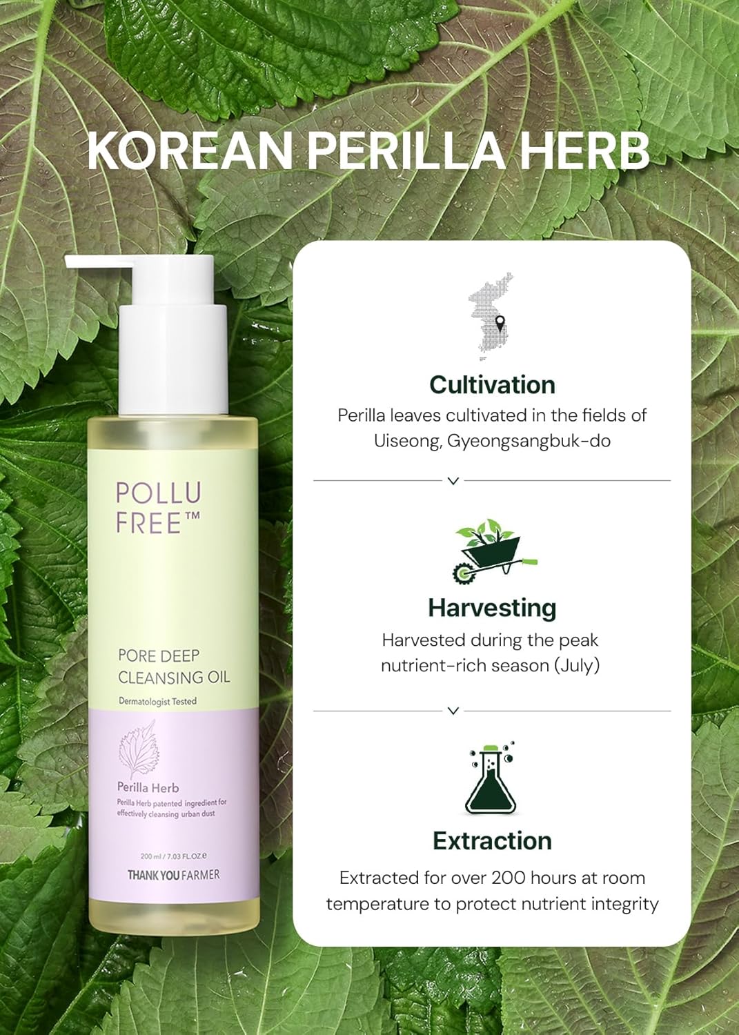 • ✔️[Korean Perilla Herb] Contains THANKYOU FARMER's patented Korean perilla herb ingredient for effectively cleansing urban dust
