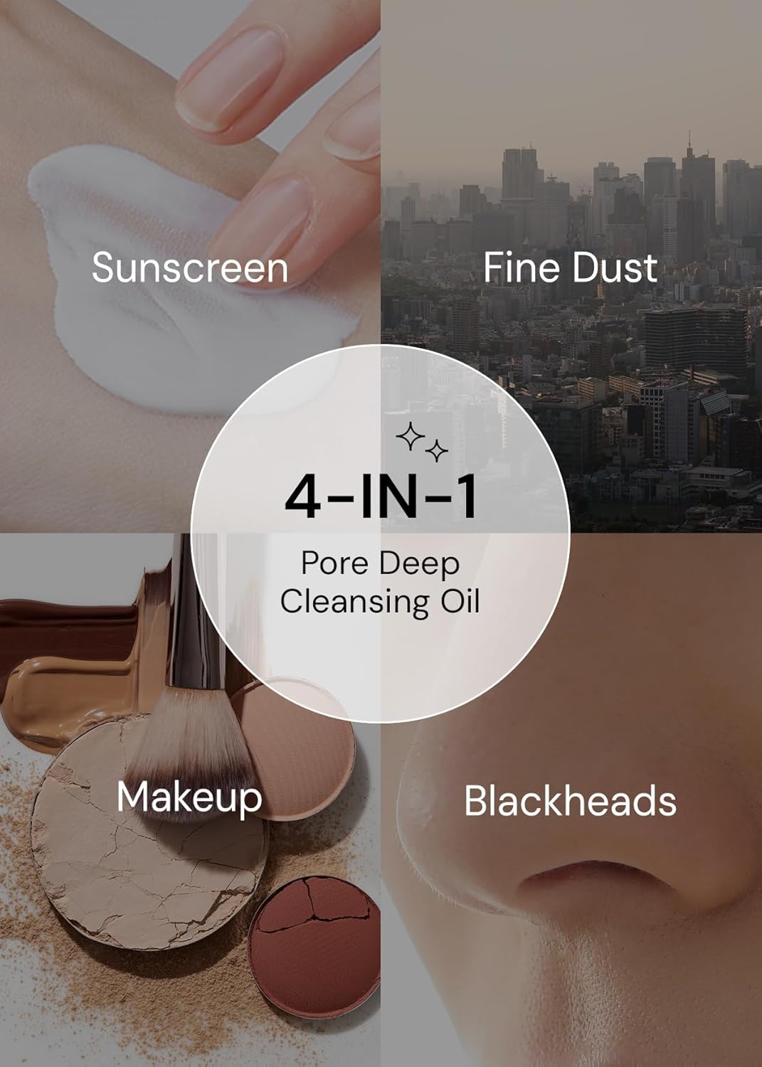 • [4-IN-1 Oil Cleanser] Gently cleanses sunscreen, urban dust, makeup, and blackheads without irritating the skin. Dermatologist tested.